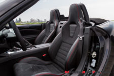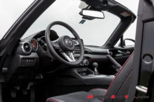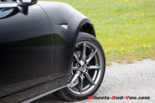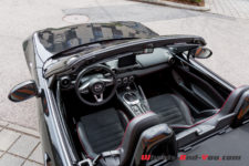 Rien de vraiment nouveau sur cette MX-5 ND qui date de 2015, si ce n’est un inédit coloris Black Metallic pour les jantes en alliage. Cela va d’ailleurs parfaitement avec la teinte « Jet Black » de la carrosserie de notre voiture d’essai. Je ne savais même pas qu’elle existait en noire !