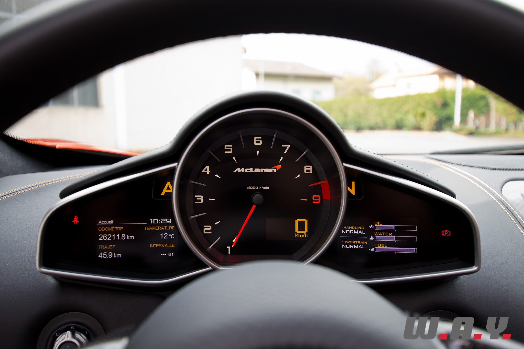 Je le dis souvent, est-ce vraiment nécessaire de parler « consommation » quand on a dans les mains une telle machine à sensations ? Bon d’accord, oui il le faut… alors sur le papier, le constructeur annonce 11.7 l./100 km en mixte, mais vous pensez bien que j’en suis (très) loin… Sur les quelques 600 km parcourus, principalement composés de petites routes enivrantes, j’aurai mesuré une moyenne de 19.3 l./100km. Je vous avais dit qu’il ne fallait pas en parler… Bref, je préciserai quand même qu’au fil des pleins, à chaque fois la valeur diminuait. Je pense donc qu’une fois passé l’euphorie de rouler avec cette McLaren et surtout sur des trajets plus raisonnables, il est facilement possible de diminuer le chiffre de quelques litres. Reste qu’avec son réservoir de 72 litres, l’autonomie envisageable n’est pas vraiment digne d’une GT. Oui oui j’ai bien qualifié cette 12C Spider de GT. En fait, c’est une de ces facette, je vous le détaillerai plus bas, l’autre étant celle d’une super sportive, mais ça vous le savez déjà.
