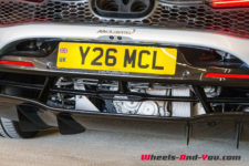Les jantes sont spécifiques et, pour la première fois chez McLaren, asymétriques gauche-droite, pour des raisons esthétiques uniquement. Les Pirelli P Zero Corsa sont évidemment énormes – 245/35 ZR 19 à l’avant et 305/30 ZR 20 à l’arrière – mais il ne faut rien de moins pour endurer les performances de l’auto.