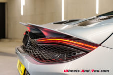 Même si j’aurais préféré une livrée orange emblématique de la marque, la couleur gris bleuté métallisé de l’auto lui sied plutôt bien. Elle fait ressortir le travail aérodynamique qui imprime chaque centimètre de l’auto. Il faut un œil averti pour repérer les évolutions par rapport à la 720S.