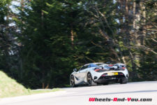 C’est la version Spider, la plus vendue avec environ 2 autos sur 3, que McLaren met à notre disposition pour 3 jours. Elle arrive tout droit de Woking, siège du groupe en Angleterre. Petite anecdote : les Anglais craignaient peut-être le climat suisse puisque je découvre dans le coffre deux chaussettes à neige neuves ! Mais heureusement, il n’y a pas de neige alors que je prends le volant du bolide.