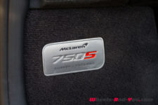 Autre nouveauté, à l’arrière cette fois, un échappement central gravé du « Speedy Kiwi », l’emblème de Bruce McLaren lorsqu’il s’alignait en compétition, remplace les doubles sorties de la 720S et permet de gagner 2 kg. La poupe n’en est que plus agressive. Le capot moteur a aussi été redessiné, abandonnant les persiennes pour une tôle mate ajourée de découpes hexagonales.