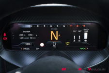 A l’instar de l’extérieur, l’intérieur évolue par petites touches. Exit le bloc compteurs de la 720S qui tournait sur un axe transversal en mode Track, n’offrant pour ainsi dire plus qu’une « shift light ». Désormais, l’écran compteur est fixé à la colonne de direction et surmonté d’une casquette sur laquelle prennent place les sélecteurs des divers modes moteur et châssis. Se déplaçant avec le volant, sa vision demeure optimale quel que soit le réglage du volant.