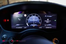 Le tableau de bord derrière le volant est doté d’un écran de 10 pouces qui change d’interface entre les modes “Sport” et “Track” avec, pour ce dernier, un compte-tours transformé en ruban. Ce gadget est en fait assez bien venu et remplace un volant équipé d’un Shift Lights, ces diodes qui indiquent quand passer le rapport supérieur.