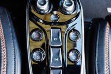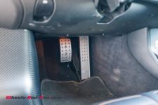 Grâce aux portières en élytre, l’accès à la voiture est assez facile bien que la structure en carbone oblige à enjamber un ponton latéral pour s’assoir. Dans cette version, la cellule en carbone est totalement apparente et confère un style beaucoup plus sportif tout en restant cossu grâce aux éléments intérieurs recouverts de cuir.