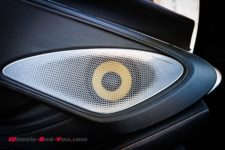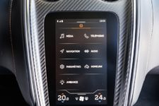 Plusieurs éléments dans l’habitacle sont en carbone comme le volant, le support autour de l’écran tactile et la structure des sièges. L’agencement et la qualité des matériaux sont au rendez-vous et malgré ces éléments en carbone, l’impression générale est en phase avec le positionnement Grand Tourisme de l’auto, avec un cockpit fonctionnel et tourné vers le pilote.