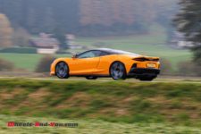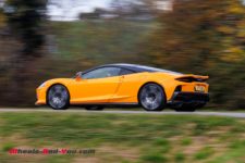 Et le moteur ? C’est toujours le M840T qui provient de la 720S mais légèrement modifié, avec des turbos qui assurent une meilleure réactivité dans les bas régimes. De fait, le moteur est plus rond et moins rageur que sur la 720S et c’est ce qu’il faut pour une GT. Certains penseront que le moteur est ainsi plus “gentil” mais avec 626 ch, ce n’est pas vraiment le cas. Les montées en régime sont linéaires et les hurlements du moteur un peu trop filtrés à mon goût mais encore une fois, vu les clients visés, c’est dans la cible. Sur route ouverte, impossible d’apprécier pleinement ce moteur mais il est très élastique et s’adapte à tous les styles de conduite.