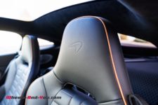 L’instrumentation est claire et agencée en bonne intelligence, sans charger ni le cockpit, ni le volant. C’est une différence notoire comparée aux autres modèles de la marque comme la 750S ou même l’Artura qui bénéficient de la nouvelle présentation de l’habitacle. Personnellement, je préfère cela, même si ça a changé dans les nouveaux modèles, car je trouve le style intérieur en adéquation avec l’extérieur. Autre point positif, les sièges sont enveloppants mais restent très agréables, avec un confort qui permettra d’appréhender un long trajet ou au contraire, d’attaquer quelques tours de piste en mode “Track”.