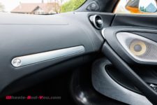 La couleur orange fait son effet. Cette teinte MSO (McLaren Special Operations) met bien en valeur les formes de la carrosserie et c’est réussi. La marque étant peu connue du quidam, j’ai souvent eu des questions du style “mais qui fabrique cette auto ?”. Avec un toit noir et un bas de caisse en carbone, la robe orange fait littéralement jaillir la coque et c’est magnifique à regarder.