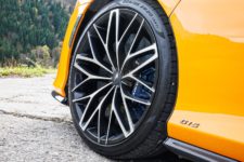 Avec la réduction de poids liée au large usage du carbone, la marque se targue de performances générales améliorées. Le 0 à 200 km/h descend effectivement à 8.9 secondes mais ce n’est qu’un dixième de mieux que la GT.