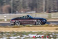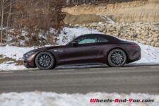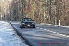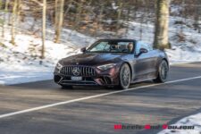 J’ai trouvé la voiture plutôt ferme. Elle n’est pas inconfortable mais le tarage des suspensions semble plus dur que sur la Mercedes-AMG GT 63 que mon collègue a essayé l’automne dernier. C’est peut-être une résultante du surcroit de poids de la version hybride rechargeable et décapotable. Lorsqu’on augmente le rythme en virage, on sent très bien le travail de la transmission aux roues avant. L’auto conserve tout de même le comportement d’une propulsion et quand on atteint les limites d’adhérence de la monte pneumatique hiver, on peut survirer à l’accélération. Une mention très bien aux pneus hiver installés sur la voiture, des Pirelli PZERO Winter, que j’ai trouvés très bons en grip et particulièrement silencieux.