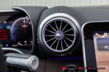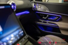 Notre voiture est équipée des sièges optionnels Performance AMG. Ils offrent un excellent maintien tout comme un bon confort pour les longs trajets. Au volant, j’apprécie le paradoxe d’avoir l’impression d’être dans une auto aux dimensions contenues alors que ce n’est pas vraiment le cas ; les commandes ou le pare-brise sont plus proches que ce que les dimensions de cette voiture pourraient suggérer.