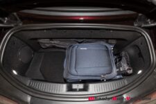 Le moteur électrique et la batterie sont installés sur l’essieu arrière. Avec une capacité de 4.84 kWh, l’autonomie électrique culmine à 12 kilomètres. Le chargeur embarqué sur courant alternatif est d’une puissance de 3.7 kW. Le système empiète largement sur le coffre dont le volume est largement réduit, d’autant plus si on emporte les câbles de recharge.