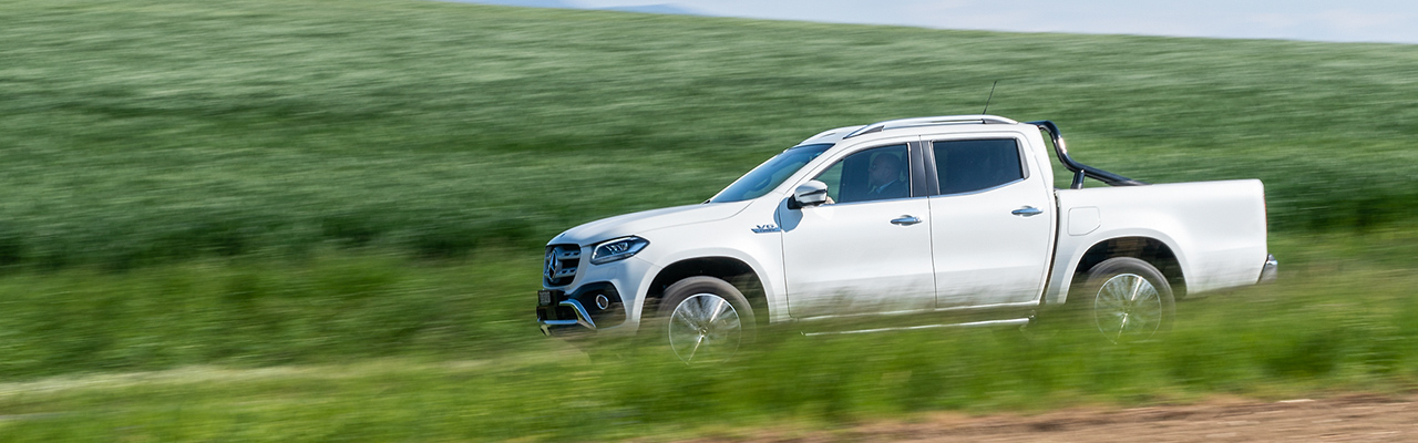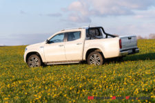 Le Classe X dans cette version Diesel pèse 2’398 kg, ce qui reste raisonnable pour un véhicule avec châssis acier classique et une motorisation V6 plus lourde qu’un moteur 4 cylindres ; en comparaison, l’Amarok affiche 2’840 kg. Sa longueur totale de 5.34 m ne dépasse que de deux centimètres celle de l’Amarok. La benne propose une longueur de chargement de 1.59 m, un record pour un pickup européen, et ses voies élargies permettent le transport de palettes standard entre les passages de roue (1.22 m). Sa charge utile s’élève à 965 kg.