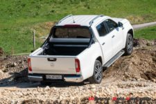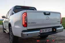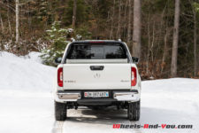De l’arrière, je trouve l’esthétique du Classe X moins charismatique que celle de ses concurrents. Les feux hauts et très étroits laissent une impression moins robuste et l’arceau factice qui s’arrête sur le haut de la benne ne fait guère sérieux.