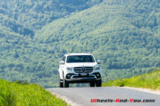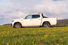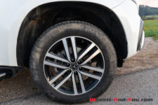 J’ai tout pour le comparer avec l’Amarok déjà essayé ici, jusqu’à la teinte blanche identique ! De prime abord, ce Mercedes présente une esthétique plus fluide, visuellement plus effilée, moins « carrée » que son concurrent VW. L’avant reprend les codes esthétiques des berlines à l’étoile, lui conférant un aspect moderne réussi et assez classe.