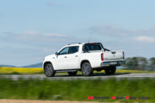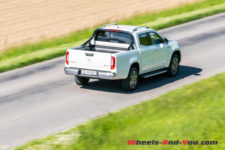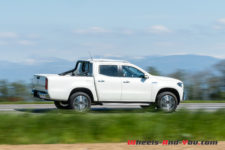 Le profil est très proche de ses homologues Nissan et Renault. Comparé à l’Amarok, la benne semble plus longue alors qu’elle intègre un arceau en option qui, lorsque l’on s’approche, s’avère purement factice. Mon véhicule de presse est équipé d’une protection intérieure de la benne en plastique dur qui protège cet espace de chargement.