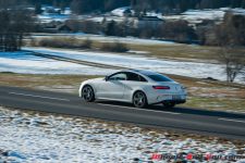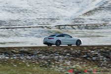 C’est dans la Vallée de Joux que j’emmène mon coupé pour la séance photos dédiée. La route est humide et tournante, mais sur le col du Marchairuz, le comportement de la Mercedes ne souffre d’aucune critique. Malgré la masse et la taille de la voiture, le roulis est contenu et la transmission 4Matic rarement prise en défaut. L’auto s’extrait des épingles avec célérité et se place facilement au virage suivant. Je déplore toutefois un manque de sensations, notamment dans le ressenti de la direction, même si les modes “Sport” et “Sport+” améliorent cet état de fait. Par ailleurs, ce coupé ne transmet que peu l’émotion de la vitesse, si bien qu’il faut constamment surveiller le compteur sous peine de se retrouver gravement dans l’illégalité. Heureusement, le fameux affichage tête haute facilite grandement cette tâche.