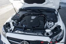 Le cœur de notre E400 Coupé est un 6 cylindres en V turbo d’un volume de 3 litres. Il développe la bagatelle de 333 ch et un couple de 480 Nm. Il permet d’élancer et de mouvoir correctement cette auto de plus de 1’800 kg. Il est associé à une boîte automatique à 9 rapports (9G-Tronic) de fort bon aloi, je reviendrai sur la question.