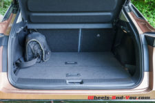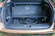 Le coffre n’est pas gigantesque, avec un volume de 438 litres. Il dispose d’un compartiment au-dessous du plancher qui permet d’y stocker les câbles de recharge ou d’augmenter la capacité. Ce n’est pas forcément très pratique lors de voyages avec bagages.
