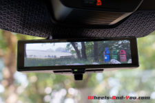 Quelques éléments que je juge peu optimaux. Les sièges sont confortables mais même réglé au plus bas, l’assise conducteur demeure nettement trop haute. Le rétroviseur intérieur est remplacé par une caméra arrière qui s’affiche sur un écran en lieu et place de l’habituel rétroviseur. Son champ de vision est toutefois restrient et surtout, il oblige notre œil à changer de « mise au point » alors que sur un rétroviseur classique, ce n’est pas le cas. C’est assez désagréable à l’usage alors qu’il ne procure pas d’avantage par rapport à un rétroviseur classique, d’autant que sa caméra est brouillée par l’eau quand il pleut.