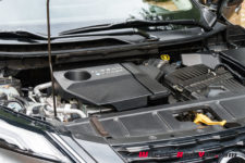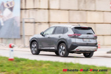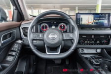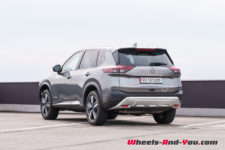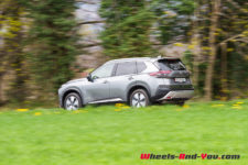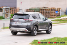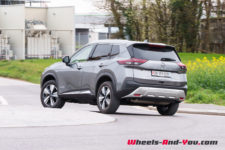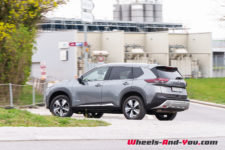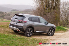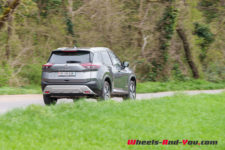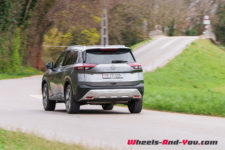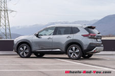 C’est donc ici que le X-Trail se singularise avec une hybridation particulière. Il dispose d’un moteur essence 3 cylindres turbocompressé de 1’497 cm3 optimisé pour produire de l’électricité via un générateur. Il développe 158 ch et un couple maximum de 250 Nm entre 2’500 et 4’500 t/min . Accouplé à un générateur électrique, il ne dispose d’aucune liaison mécanique avec les trains roulants. Le générateur alimente les deux moteurs électriques de la version e-4FORCE (4×4) et recharge une petite batterie de 1.73 kWh utiles. L’ensemble propose une puissance totale de 214 ch pour un couple de 525 Nm.