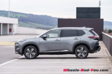 Son profil est assez moderne malgré un pare-brise arrière plutôt vertical. Les boucliers avant et arrière intègrent chacun une jupe de couleur contrastée, ce qui renforce le dynamisme de l’ensemble. Le X-Trail n’en est pas pour autant un poids plume puisque la version 7 places de mon essai affiche presque 1’900 kg à vide et 2’535 kg à charge maximale.