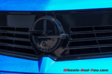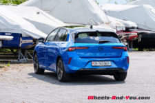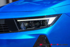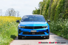 La face avant est verticale et relativement haute. Elle entraîne un capot plutôt plat qui rejoint un pare-brise assez incliné. Le regard, qui intègre ici les phares Intellilux Pixel LED Matrix en option, est effilé. Le bouclier avant est celui de l’Astra GSe que nous vous avons présentée il y a quelques temps.