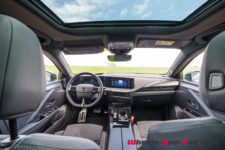 Même s’il n’est pas complètement nouveau puisqu’on le connaît depuis 2021, le design de l’Astra ne prend pas une ride. Dans la peinture “Blue Vertigo” de ma voiture d’essai, elle affiche même une certaine prestance dans le segment des compactes. La calandre Vizor noir laqué, le toit et les montants de fenêtres de la même teinte n’y sont pas étrangers. Le toit est ici vitré et ouvrant, c’est une option.