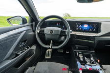 Le maître-mot de l’expérience de conduite dans l’Opel Astra e est Confort. C’est sans doute la voiture électrique du segment des compactes la plus confortable que j’ai roulée. Confort de suspension d’abord, avec des débattements qui gomment efficacement les irrégularités de la chaussée quelle que soit la vitesse. Confort par une insonorisation poussée et particulièrement efficace pour les bruits aérodynamiques, quasiment imperceptibles de l’intérieur. Confort par une assise de bonne facture et une position de conduite qui me convient parfaitement. Confort enfin par une ergonomie efficace, sans complexité excessive. Les touches de raccourcis physiques permettent de gérer 95% du quotidien sans devoir dérouler menus et sous-menus. C’est aussi en mode Confort que je préfère rouler l’auto. Certes, la puissance est limitée à 136 ch mais c’est largement suffisant au quotidien.