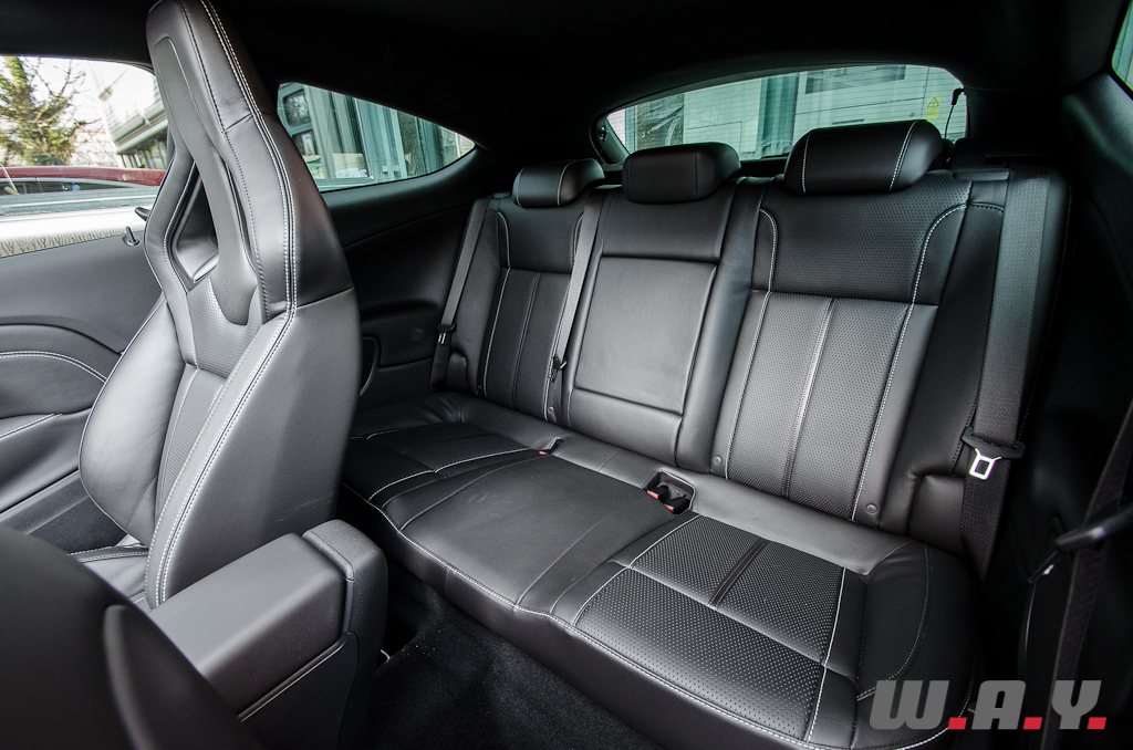 Je ne reviendrai pas sur les problèmes de visibilité sécuritaire qui sont inhérents au modèle de base. Par contre, chose décevante liée à ce fait, l’impression de vitesse en est du coup réduite, car elle dépend principalement de ce que nos yeux perçoivent sur les côtés alors même que nous regardons devant nous. Or, la géométrie de l’auto avec ses larges montants plongeant nous empêche d’avoir ce traditionnel défilement rapide du décor sur les bords de l’image. Je me suis du coup surpris à rouler plus vite qu’à mon habitude pour éprouver la même sensation de vitesse.