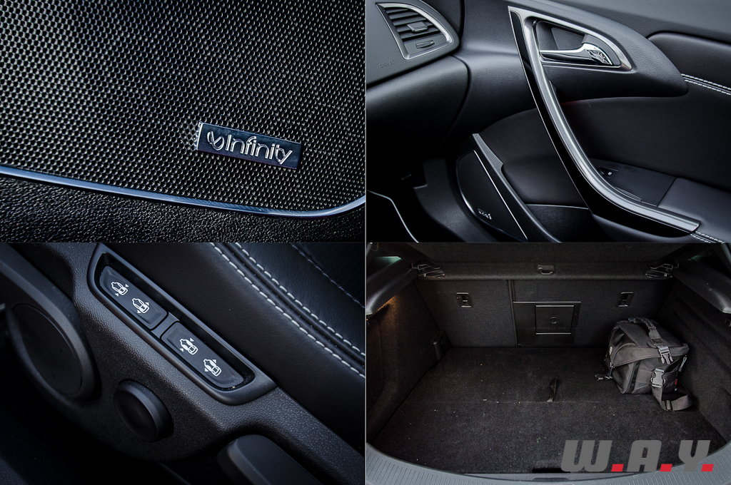 Au niveau des options, notre exemplaire d’essai était équipé de l’excellente sonorisation de marque Infinity, d’un volant chauffant très agréable en hiver, des sièges Performance OPC ainsi que d’un magnifique pare-brise panoramique. Dommage cependant que suite à la présence de ce dernier, Opel n’aie pas conservé l’éclairage plafonnier toujours bien pratique de nuit.