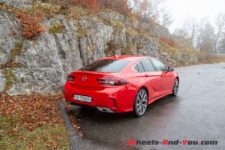 Avant cela, le passage obligé par la ville puis par l’autoroute. Immédiatement confronté à un milieu urbain dense, je me sens à l’aise pour diriger la GSi et la glisser dans le trafic de l’heure de pointe de la cité lausannoise. Comme mentionné auparavant, la position de conduite est optimale et permet d’être alerte sur tout ce qui se passe autour de soi et d’apprécier correctement l’agitation alentour. La directrion se montre consistante et précise, bien que trop souple à mon goût, un défaut que le mode Sport ne saura plus tard gommer. L’amortissement est définitivement orienté vers le confort, avec un filtrage conséquent mais raisonnable et une rigidité présente mais contenue. Le roulis quant à lui est faiblement perceptible. Enchaîner les kilomètres sur autoroute ne constitue aucun défi, les assistances à la conduite étant en charge du gros du travail. Le bruit dans l’habitacle, sans être inexistant, demeure parfaitement acceptable pour un modèle de ce segment.