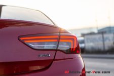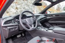 Le coffre est d’un volume de 490 litres, sous cache-coffre, ce qui le situe dans la parfaite moyenne du segment. Une fois la banquette 60/40 rabattue, il grimpe à 1’450 litres qui placent pour le coup l’Insignia GSi dans les bonnes places comparativement à ses concurrentes directes.