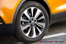 Quoiqu’asymétriques, les jantes optionnelles bicolores en alliage léger de 18 pouces présentent un aspect plaisant. Malgré la hauteur du véhicule, elles remplissent bien les arches de roues elles-mêmes protégées par des élargisseurs en plastique noir. Les bas de caisse et de pare-chocs sont de la même matière et renforcent l’aspect aventurier de notre Opel.