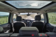 Tout comme le masque avant, la nouvelle planche de bord est directement inspirée de celle de la nouvelle Astra. L’arrivée d’un écran tactile 7“ remplace bon nombre de boutons par ses nombreuses fonctions, allégeant l’ensemble des commandes. Je suis séduit par le duo pare-brise panoramique et toit ouvrant, lui aussi panoramique. J’ai vraiment l’impression d’être dans une bulle de verre à regarder les étoiles !