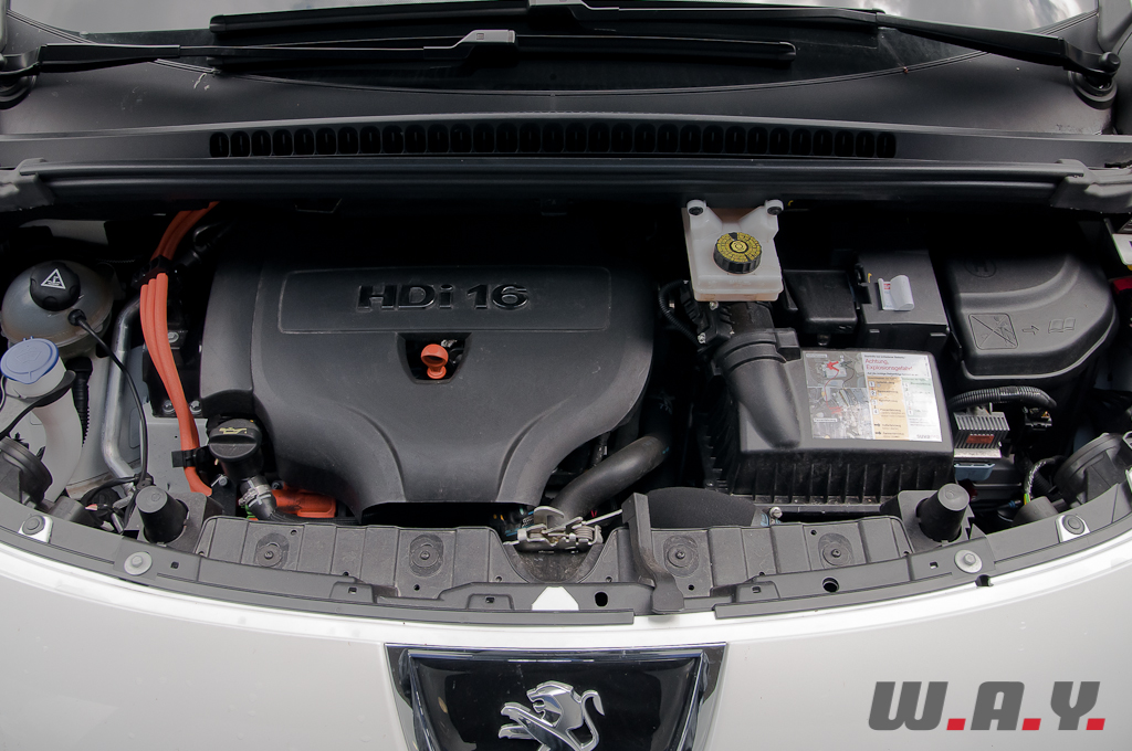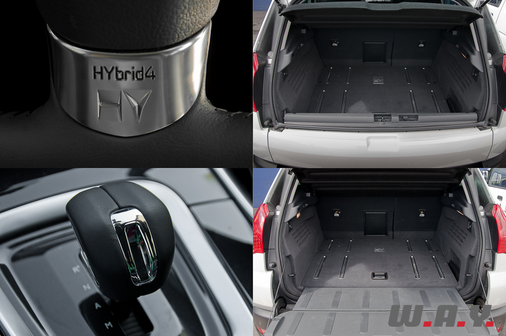 Vous l’avez compris, c’est sous le capot que se cache l’innovation. A l’avant on trouve un moteur diesel HDi 2,0 litres développant 163 CV et monté sur l’essieu arrière, un moteur électrique de 37 CV. Contrairement aux autres systèmes hybrides du marché, l’HYbrid4 ne possède aucun lien mécanique entre le moteur thermique et le moteur électrique. Cela permet d’obtenir une traction intégrale « à bon poids » et une puissance cumulée de 200 CV pour un couple maxi de 450 Nm lorsque les deux moteurs fonctionnent en parallèle.