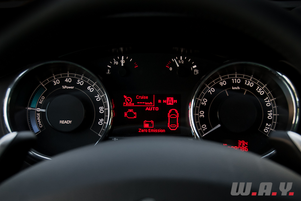 L’interaction entre les deux motorisations se fait sans la moindre secousse, en toute discrétion. Un performant système « Stop and Start » permet la mise en veille du moteur diesel lors du roulage en tout électrique ou lors des phases d’arrêt. Pour utiliser au maximum la propulsion électrique il est indispensable de garder le pied léger sur l’accélérateur, car sitôt qu’il s’alourdit le moteur diesel reprend immédiatement le dessus. Même avec les batteries complètement chargées il est quasiment impossible d’effectuer un démarrage en légère côte sans que le moteur thermique ne se mette en marche. On se demande pourquoi.