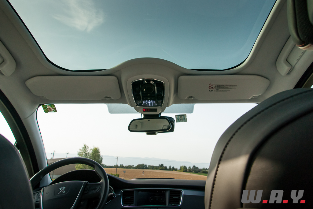 La ligne de cette 508, habituellement plutôt fade, a gagné en dynamisme et agressivité malgré sa longueur de 4.81 m. Les carénages des passages de roues et des bas de caisse ainsi que les roues de grand diamètre y sont pour beaucoup, tout comme les nombreux chromes et la couleur de carrosserie pour le moins réussie, le brun Calern (option). De série, la RXH est également équipée d’un toit panoramique, accessoire toujours agréable pour améliorer la luminosité intérieure, mais en cas de forte chaleur l’habitacle risque de se transformer rapidement en cocotte-minute… Et ce, expérience faite, même avec le pare-soleil mis en place dans le cas de cette auto !