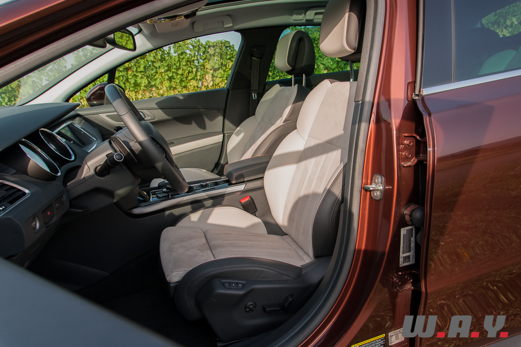 Dès que nous nous approchons de notre RXH d’essai dans sa robe à la teinte originale, nous sommes attirés par son habitacle tendu de cuir noir et alcantara crème (option). Un magnifique combiné de couleurs qui donne une luminosité rayonnante à cet intérieur. Certainement l’un des habitacles les plus lumineux dans lequel j’ai pu m’installer. Le touché de ces deux matières n’a d’égal que la qualité de finition de cet intérieur. Un standard que j’ai l’habitude de rencontrer dans des autos haut de gamme, généralement de fabriquants allemands. Mais non, nous avons bien affaire à une voiture française, bien entendu dans la catégorie Premium. Quel plaisir de voir que les travaux de finition sont de plus en plus réalisés avec minutie, et ce chez la grande majorité des constructeurs.