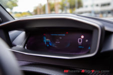 Peugeot tient maintenant à son petit volant à méplat, avec peu de boutons et une commande de régulateur de vitesse cachée derrière. Je dois m’habituer à avoir le volant très bas pour ne pas cacher le compteur i-Cockpit 3D. Décalées sur deux plans, on retrouve de nombreuses informations. A gauche, il y a toujours l’autonomie et, à droite, une jauge qui indique si on sollicite beaucoup ou peu la batterie, ou encore si on la charge. Le centre peut afficher une infinité d’informations, mais je n’ai pas trouvé comment y indiquer un compteur journalier. Cet i-Cockpit est beau, en revanche la perspective fausse la vue du passager qui voit des informations superposées.