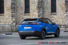 En termes de proportions, on est légèrement plus imposant que la citadine 208, dont nous avons essayé la déclinaison essence cet été, et pèse 93 kg de plus. Plus haut sur roues, ce petit SUV a surtout un pare-chocs arrière surdimensionné digne d’une Jeep. 10 cm de longueur de caisse lui sont consacrés. En finition GT, le pare-chocs et les bas de caisse gagnent des inserts couleur alu (comme en finition Allure) et une carrosserie bi tons avec le toit Black Diamond.