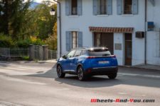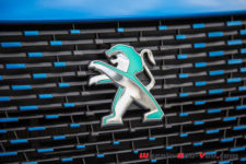 Avec ses pointes bleues et son lion stylisé en bleu, la face avant est une réussite. Les jantes 18” bicolores sont assez jolies aussi, les inserts Gris Storm renforcent le côté dynamique de la voiture.