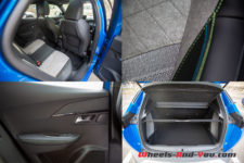 Avec un conducteur d’1m85, la place aux jambes à l’arrière est même satisfaisante pour une voiture de 4m20 et 10cm de pare-chocs. Le volume du coffre est intéressant, avec 405 litres séparés par un plancher qui tient tout seul en position haute pour faciliter le chargement et, au besoin, la banquette est rabattable en deux tiers, un tiers.