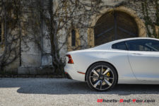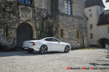 Pour revenir au cœur qui anime notre Polestar 1, il y a tout d’abord un traditionnel quatre cylindres 2.0 essence à double suralimentation (compresseur + turbo), à priori le même que celui qu’on retrouve sur la V60 T8 ou le XC60 T6 essayées par mes soins pour Wheels And You, qui propose une puissance de 320 ch délivrés sur le train avant exclusivement. Ensuite viennent s’ajouter deux moteurs électriques de chacun 85 kW (116 ch) propulsant les roues arrière, ainsi qu’un alterno-démarreur intégré (ISG) de 52 kW (68 ch). Résultat, la puissance cumulée à disposition est de 609 ch pour un couple camionnesque de 1’000 Nm ! Ah c’est sûr, là ça commence à causer et beaucoup ne s’attendaient pas à cela en découvrant la suédoise.