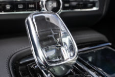 L’habillage de cuir est vraiment de bonne facture et j’apprécie la présentation générale avec du carbone et des éléments à l’apparence aluminium. Malgré l’omniprésence de la couleur noire, le simple fait d’avoir les ceintures orange/dorées donne un soupçon de gaîté à l’habitacle. Dernier détail très singulier, le sélecteur de vitesse en « cristal ». Ça ne manque pas d’alimenter les discussions avec mes passagers et même si son esthétisme ne me plait pas particulièrement, il a le mérite d’être différent.