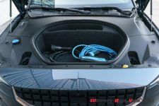Les dimensions sont celles d’une berline moyenne : 4.60 m de long pour 1.98 m de largeur et 1.48 m de hauteur. Le poids est conséquent puisqu’il s’élève à 2’123 kg, batteries obligent. C’est près de 170 kg de plus que la Tesla Model 3 Dual Motor et c’est l’une des seules critiques que j’émets sur la voiture qui, on le verra plus loin, le cache toutefois plutôt bien.