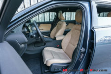Quant à la version avec pack Performance que je peux rouler quatre jours juste après la version « normale », elle permet de rendre le comportement encore plus sportif en ajustant les suspensions selon ses propres sensations. La répartition du poids quasi parfaite – 51% à l’AV, 49% à l’AR – rend ces réglages particulièrement réactifs. J’avoue toutefois me demander s’il fait sens de proposer un tel pack sur une auto toute électrique qui n’a pas vocation d’aller user le bitume sur des « track days ». Le freinage par régénération est tellement efficace qu’on se demande quelle est l’utilité des gros freins Brembo, même s’ils participent assurément à une sécurité supplémentaire en cas de freinage d’urgence.