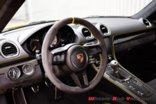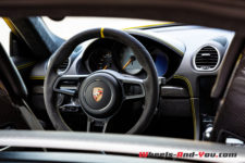 Au moment de récupérer ma voiture d’essai, je ne peux que tomber sous le charme de sa configuration. Habillé d’une sublime robe « Jaune Racing », ce Cayman GT4 affirme sa personnalité. Bien évidemment, les différents attributs spécifiques à ce modèle renforcent l’image qu’il dégage.