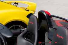 Deuxième émerveillement lorsque j’ouvre la porte, mon regard est immédiatement attiré par les sièges baquet en carbone, les mêmes qui équipement la phénoménale 918 Spyder. A cela s’ajoute une présentation intérieure en parfaite adéquation avec la teinte de carrosserie, à savoir des surpiqûres jaunes un peu partout, ainsi que les ceintures de sécurité jaune. Il n’y a pas à dire, le mélange noir et jaune, ça rend parfaitement bien.